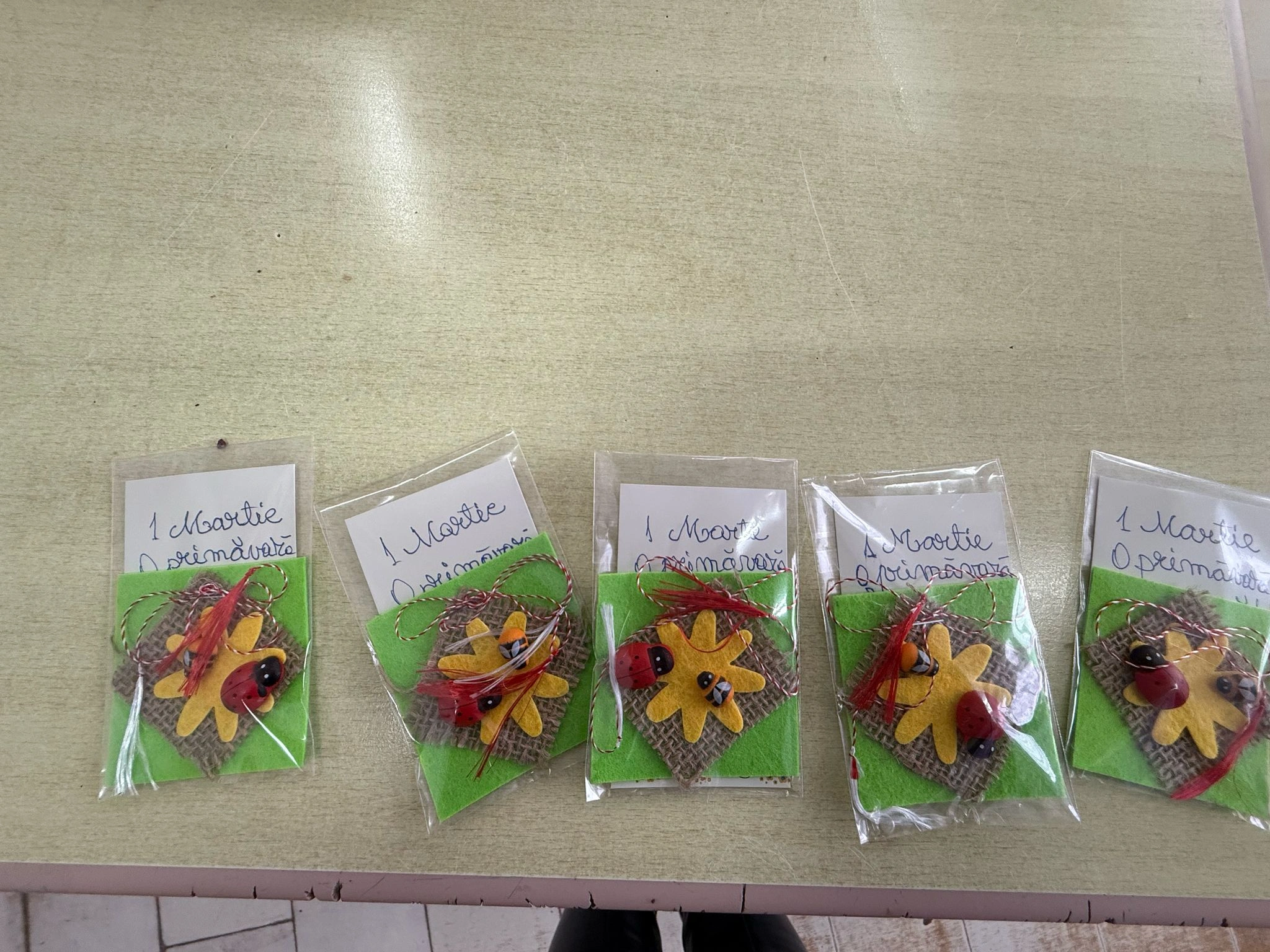 Elevii claselor a III-a A, a III-a B, a III-a C, a III-a D, a III-a E, sub coordonarea doamnelor învățătoare Udrea Claudia, Aldea Alina, Pârv Coralia, Popa Adriana, Ionescu Andra, au realizat mărțișoare din diferite materiale folosind tehnici diverse pe care le-au oferit unor copii din clasele primare ale școlii din cadrul Liceului Tehnologic Eremia Grigorescu, Mărășești. La rândul lor au primit daruri sub formă de mărțișoare ca simboluri ale renașterii naturii, ale primăverii – anotimp plin de viață și culoare.