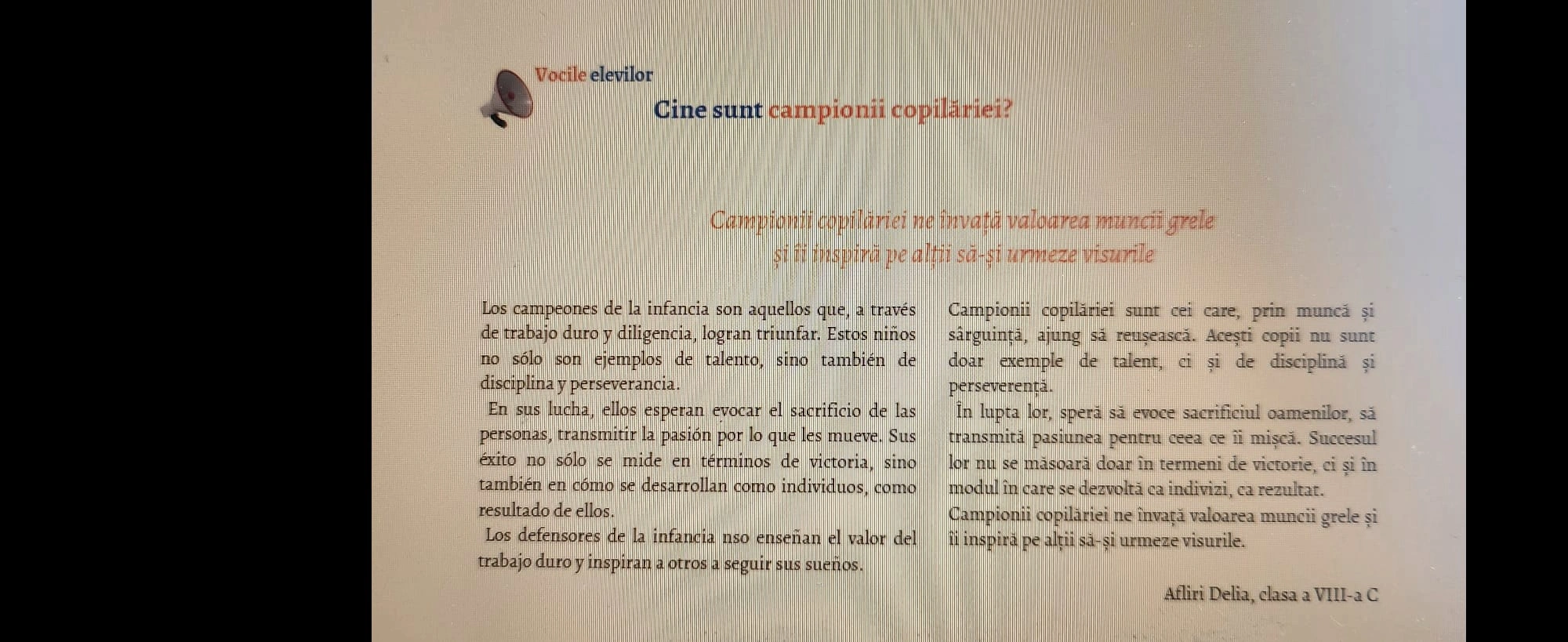 Echipa ce formează colectivul de redacție și-a propus ca, în continuare, acesta fiind al patrulea număr al revistei, să ofere oportunitatea de a fi cunoscute vocile elevilor printr-un exercițiu de argumentație pe baza temei propuse, prin exprimarea unor impresii legate de proiecte derulate, activități sau excursii organizate.