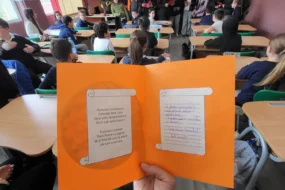 Școlarii au intrat în „papucii scriitorilor”, participând la exerciții de creație, astfel luând naștere texte originale, variate, însoțite de desene tematice, adevărate povești în culori.